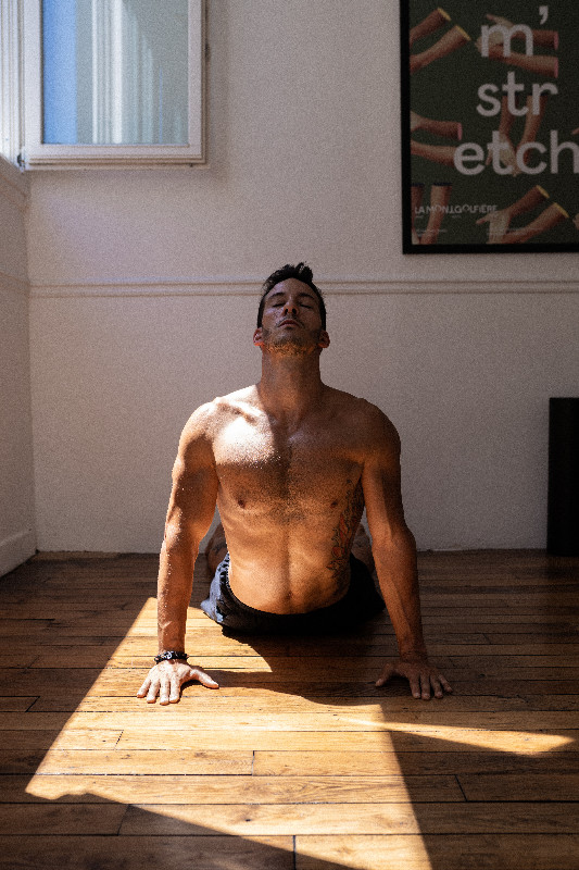 Tu peux improviser des petits enchainements qui combinent mouvements de yoga, étirements, mouvements de mobilité et quelques répétitions de mouvements de renforcement musculaire (Ex: Squat, Glute Brige, Good Morning, Lunges, etc.).